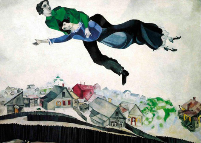 马克.夏加尔---“飞跃埃菲尔铁塔的新婚夫妇”